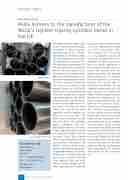 The UK based market leader in the eld of vehicle-mounted hydrau- lic systems, including front-end, underbody and ejector cylinders, has ordered another Reika cutting line after twenty years of contin- uous production on the rst line. The reliability and performance of the rst line was the driving argu- ment for the new capital invest- ment after such a long time. Every hydraulic cylinder housing is pro- duced from a tubular blank, which has to be cut from a long preci- sion steel tube according to the required length. As the English manufacturer is mainly producing telescopic cylinder units for truck and mining vehicles, the exible variety of length is the challenge. As the ingoing drawn-over-man- drel tubes in the diameter range between 63 – 250 mm are quite expensive and the numbers per batch are not such high, the target was to minimize the scrap/ rest end volume. The individual project engineering with tube optimization software and various loading and discharging positions was developed together with the customer´s team. Each ingoing tube is length measured before the cutting pattern is determined. The Siemens control includes a data table for the different production lengths and numbers. The weekly program can be downloaded and will be processed with minimum scrap. Anyhow, short rest ends, which cannot be avoided, will be either automatically transported