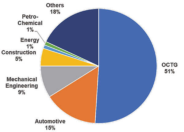 Many countries have decided to lock down major parts of the industry. The international stock markets are flooded with huge amounts of financial support to avoid bankruptcy or unfriendly take overs. Some countries are trying to compensate the corona consequences with financial support also for mid-size and small entities. Major supply and service chains are not working any more. It will take quite some time to recover the well-established globalized production network. In the meantime, the consumption of energy and industrial goods has fallen apart. The tube and pipe industry, unless still protected by long-term delivery contracts is also hard hit by this global pandemic. The by far largest market segment for tubes and pipes is the OCTG (Oil Country Tubular Goods) industry with 51% market share (Figure 1).